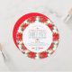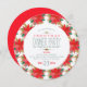 Elegant Christmas poinsettia illustration with green evergreen and gold leaves pattern, Christmas dinner party invitation.