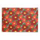 This pillowcase has a Christmas design of poinsettias clustered together on a field of light blue.