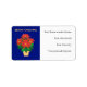 A Christmas Return Address Label with a bright red Poinsettia on a deep blue background and 'Merry Christmas' in gold-effect lettering. From a handpainted paper collage design by Judy Adamson.