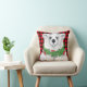 Christmas polar bear cub, Holly berries wreath Throw Pillow
