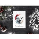 watercolor painting of a polar bear with a red winter hat in christmas style