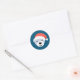Christmas Polar Bear in Red Hat on Blue Classic Round Sticker