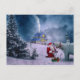 Who needs a reindeer when you got this big white cuddly polar bear and cub! A happy joyful Christmas Santa with a large white polar bear and cub on a chilly winters evening. A warm house with smoke filled chimneys, snow-covered pine trees and a big blue full moon set the tone in this Christmas scene. Have a very merry Christmas this year!