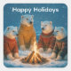 Christmas Polar Bears Around a Bonfire Square Sticker