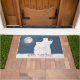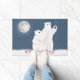 Tiny white starry snowflake pattern on winter blue background with red Merry Christmas text and cute polar bears.