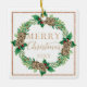 "Christmas Proposal Red Wreath Holly Leaf Greenery Ceramic Ornament ." What a special way to capture the life changing moment where two decide to become one in marriage. Propose to your beloved with this elegant heirloom keepsake Christmas tree ornament. Watercolor artwork of a Christmas wreath with pine cones, holly leaves and berries with gathered forest foliage greenery that was hand painted by internationally licensed artist and designer, Audrey Jeanne Roberts, copyright.