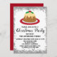 Christmas Pudding Xmas Party Red Silver Glitter Invitation