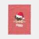 Christmas Pug Dog on Red Plaid Fleece Blanket