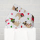 Christmas Pugs Tissue Paer, Cute Pug Dogs in Festive Holiday Outfits with a Red Background.