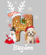 Get the whole family into the holiday spirit with our charming Christmas Crew T-shirt! This festive design showcases gingerbread letters adorned with Santa hats and antlers, exuding a playful holiday vibe. On one side, a lovable cat or puppy holds a bag of treats, while the other side features a snowman with a cozy scarf and a magical wand. Adding an extra sweet touch, a ribbed candy cane pops out from the letters, bringing a delightful twist to the design.