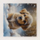 Cute holiday puppy playing in the snow on a winter day Christmas puzzle.
