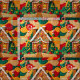 This whimsical, quilted look Christmas gingerbread house is adorned with swirls, candy canes and Christmas trees.
