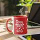 Quote: Official Holiday Spirits Taster (x3) Red background, white text. Decorated with glasses of wine, Santa's hat, coctail glass and snow crystals,