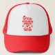 Quote: Official Holiday Spirits Taster. Red background, white text. Decorated with glasses of wine, Santa's hat, coctail glass and snow crystals,