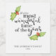 "It's the most wonderful time of the year" Christmas quote or saying with watercolor holly illustration bottle label.