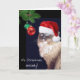 Ragdoll cat with holiday pine and ornaments with Santa hat on black for humourous Christmas.
