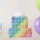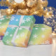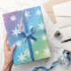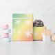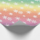 Modern and pretty white snowflakes pattern on rainbow background. Christmas gift ideas.