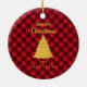 A rustic red and black buffalo plaid pattern with gold text and Christmas tree. Ideal for Christmas gifts and decor. Customize the Christmas ornament with your text and make it your own.