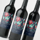 Christmas Red Botanical Floral Blue Holiday Wine Label