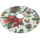 Complete your Christmas trees' presentation with this celebratory tree skirt, featuring a red bow and holiday greenery on a white brushed polyester base. This nature-inspired design includes pinecones, tree branches, and holly leaves, all subtly accented with delicate sparkle, gold ornaments, and gold snowflakes.