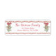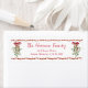 On trend Christmas return address label featuring a whimsical red dotted border, watercolor illustrations of a red coquette bow and seasonal mistletoe greenery, your name showcased in a stylish red script, and your address in classic serif typography.