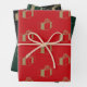 Christmas red, dark pine green, black and faux gold cute gifts packages pattern Wrapping Paper Sheets.