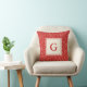 Christmas Red Dots Classic Modern Monogram Throw Pillow