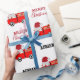 Christmas Red Fire Truck Custom Name Wrapping Paper