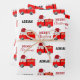Christmas Red Fire Truck Custom Name Wrapping Paper Sheet