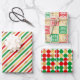 CHRISTMAS RED GREEN GOLD HOLIDAY PATTERNS WRAPPING PAPER SHEET