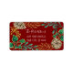 Deep red burgundy background with white lettering. "Christmas Red Holly Pine Cone Watercolor Greenery Return Address Labels." Elegant hand painted watercolor elements of pine cones, holly berries and leaves along with winter berry leaf greenery and gold glitter foliage. All art was created by internationally licensed artist and designer, Audrey Jeanne Roberts, copyright. Use these as back of the envelope return address labels and envelope seals.