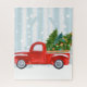Christmas Red PickUp Truck on a Snowy Road Jigsaw Puzzle