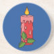 Christmas Red Pillar Candle with Holly Coaster