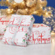 Christmas in Fancy Red Script with Scrolls and Green and White Ribbon personalized wrapping paper. Personalize this wrapping paper by changing the background colour or switching out the tiled image for your own.