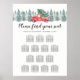 Christmas theme table plan featuring a watercolor red vintage truck, green spruce trees, and a modern dinner seating chart template of 14 tables.