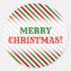 Christmas; Red, White & Green Striped Pattern Classic Round Sticker