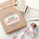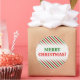 This round Christmas sticker design features a pattern of red, white and green stripes. These are colours commonly associated with Christmas. It also features the warm greeting, "MERRY CHRISTMAS!", in red and green coloured text. [~Z0000114]