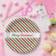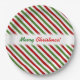 Christmas; Red, White & Green Striped Pattern Paper Plate