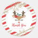 Christmas Reindeer Birthday Gold Snowflakes Stripe Classic Round Sticker