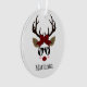Christmas holiday red nosed reindeer is pure cool behind black mirrored sunglasses and you know she is a lady with her burgundy red hair bow and pink cheeks. This Xmas design features a sweet holiday reindeer face with brown antlers sporting a red bow, pink blush cheeks and black mirrored sunglasses perched about a red nose, a fun Christmas holiday design. Message and date on back can also be customized.