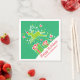 Share the fun of the Happy holiday season with this fun red, green and white, Christmas reindeer prancing over Christmas gifts personalized napkins. A great napkin for a Christmas holiday gathering or Happy holidays parties. Personalize with your family name. A great addition to your Christmas festivities. Art and design by Sarah Trett.