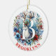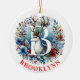 Bring a touch of festive magic to your holiday décor with this B Monogram Christmas Ornament! This enchanting design features a reindeer poking playfully through the lower opening of the letter "B," wearing a charming crown of pine branches and red berries. Surrounding the monogram is a stunning wreath of red and blue winter florals, creating a beautiful and vibrant holiday statement. A customizable name area makes this ornament a perfect personalized gift for loved ones or a unique addition to your own tree. Celebrate the joy of the season with this whimsical and personalized ornament, blending holiday charm with a unique monogram design! Edit text from the product page or to change font style or colour, use the design tool.