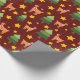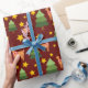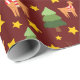 Christmas Reindeer, Tree & Stars Burgundy Seamless Wrapping Paper