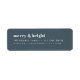 A stylish modern holiday return address label featuring a bold retro typography quote “Merry & Bright” in white on a smoke blue background. This trendy and minimalist design combines classic holiday charm with a clean, contemporary look. Personalize it easily with your own greeting, family name, and address for a unique touch that feels both festive and refined. Perfect for pairing with our matching holiday card collection in the same elegant design, this label adds a polished and coordinated finish to your seasonal stationery. A bold yet simple choice that stands out beautifully and brings a modern twist to your Christmas mail.