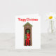 This fun Christmas card features a Royal Guard standing at attention in front of his gingerbread guardhouse, complete with candy cane pillars and frosted icing details. The scene is surrounded by festive touches, such as Christmas greenery, and falling snowflakes, bringing a touch of holiday magic. Perfect for spreading Christmas cheer, this whimsical design combines classic British charm with a sweet seasonal twist.