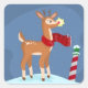Sticker shown with a festive holiday Christmas Rudolph print.