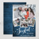 Christmas Rustic Blue Wood 4 PHOTO Greeting Holiday Card