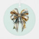 Christmas Rustic Green Gold Bow Personalized Metal Ornament