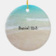 Tropical Christmas scripture ornament with a big white sand dollar and custom text on both sides. An image of the seashore with turquoise ocean water is behind the seashell and the verse is from the book of Daniel. The verse is about leadership and would make a nice gift for a pastor or any clergy member.