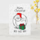 Merry Christmas Santa Claus Bichon Frise - Funny smiling cartoon Bichon with a Santa hat and a Christmas present. HO HO HO! Copyright © Angi Laframboise. Cute dog breed Christmas gifts for dog lovers.